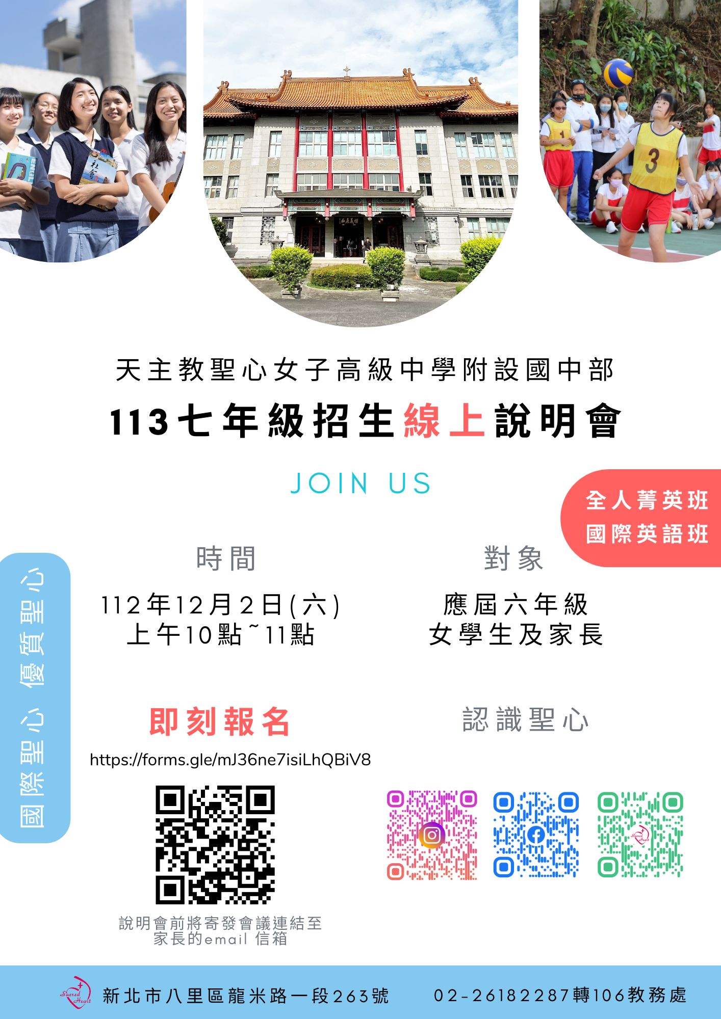 (二) 聖心女中首頁www.shgsh.ntpc.edu.tw—最新消息--113七年級招生線上說明會