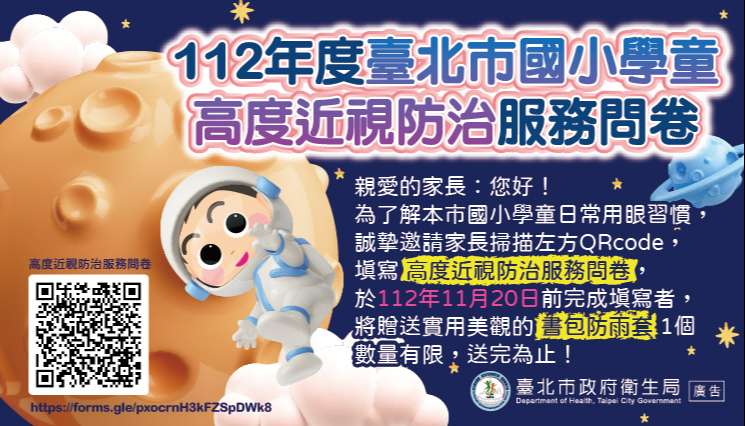 為了解本市學童日常用眼習慣,臺北市政府衛生局委託國立陽明交通大學進行旨揭問卷分析,以為研擬兒童近視防治相關策略參考。