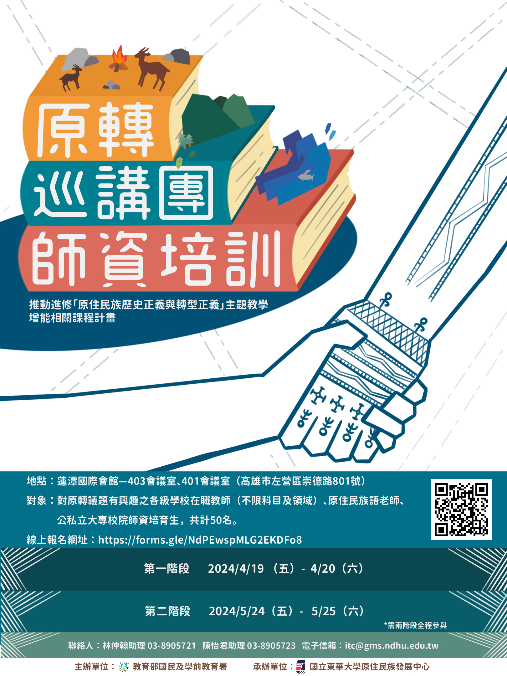 一、教育部國民及學前教育署辦理「推動進修原住民族歷史正義與轉型正義主題教學增能相關課程計畫」-原轉巡講團師資培訓(初階班)