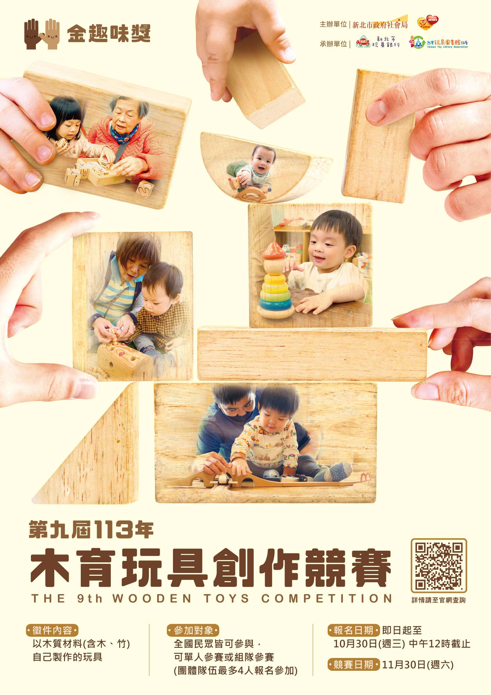 一、本會與新北市政府社會局合作辦理《113木育玩具創作競 賽-第九屆金趣咪獎》,誠摯邀請貴校師生參與競賽活 動。