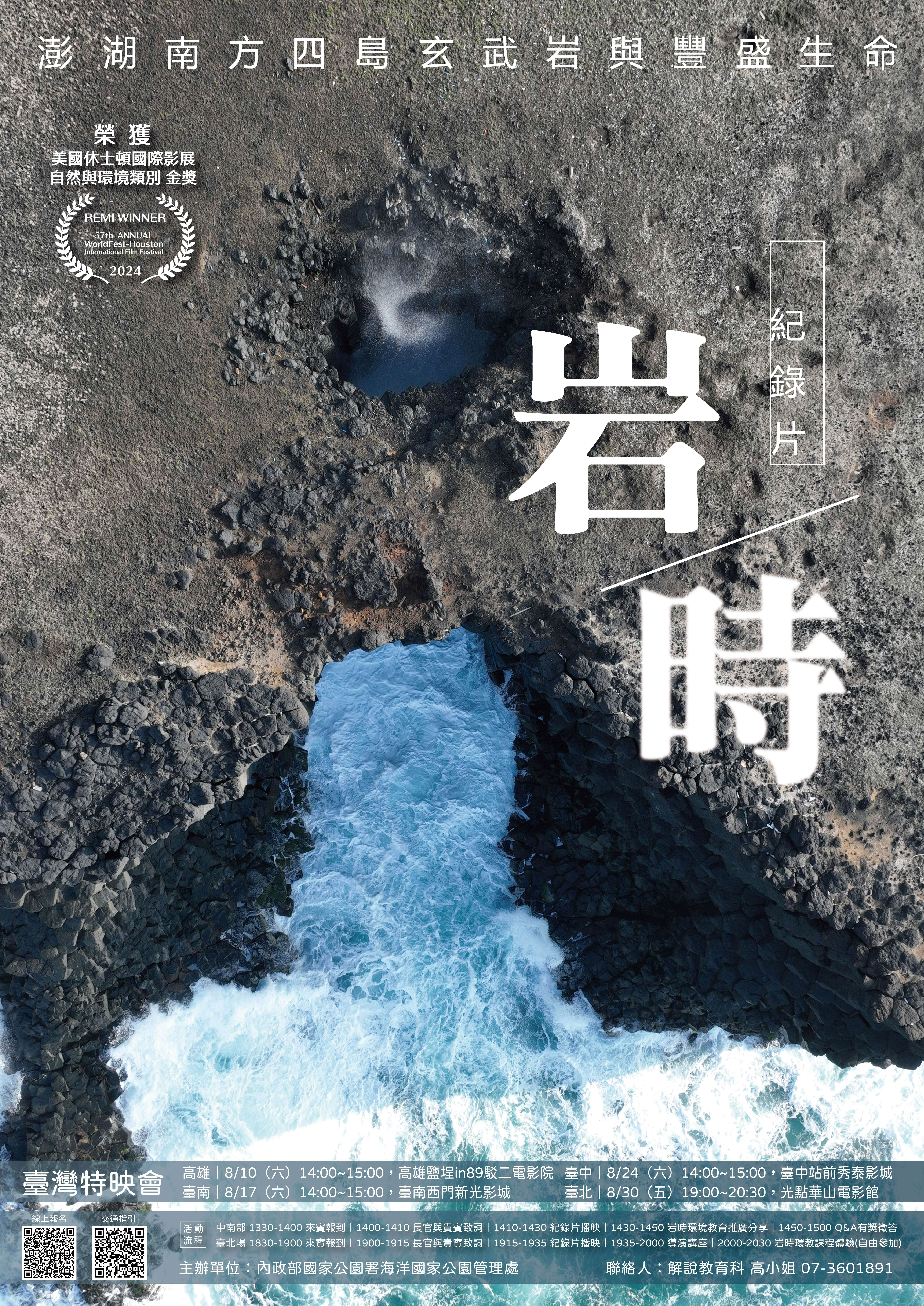 二、旨揭紀錄片以影像呈現澎湖南方四島國家公園玄武岩地質、生態、人文及棲地保育等多元內涵,並榮獲「第57屆休士頓國際影展」(57thWorldFest-Houston)自然與環境類別(Nature&Wildlife,Film&VideoPrdns)金獎(Gold)肯定。