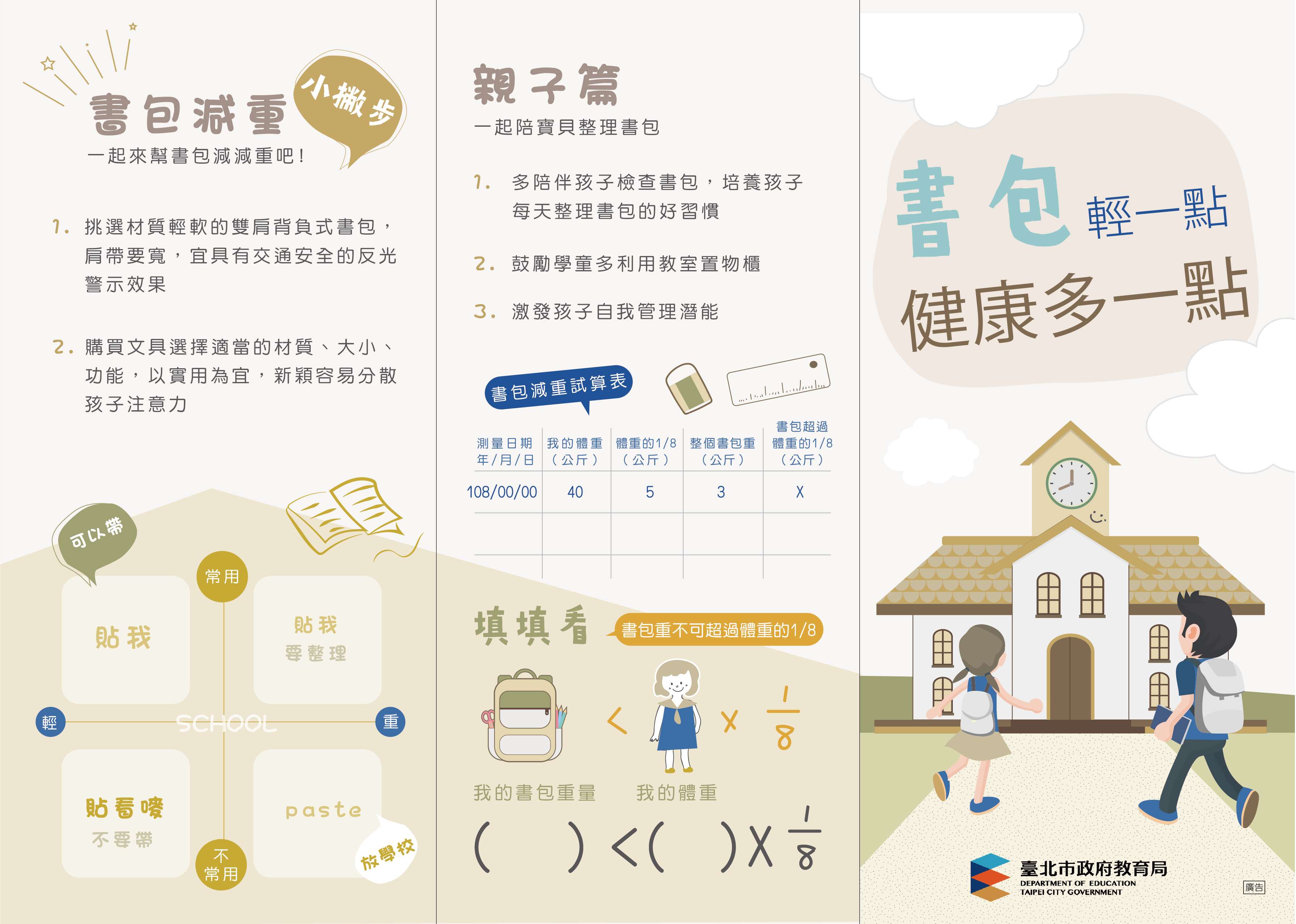 臺北市政府教育局來文重申各校113學年度持續落實學童書包減重措施—