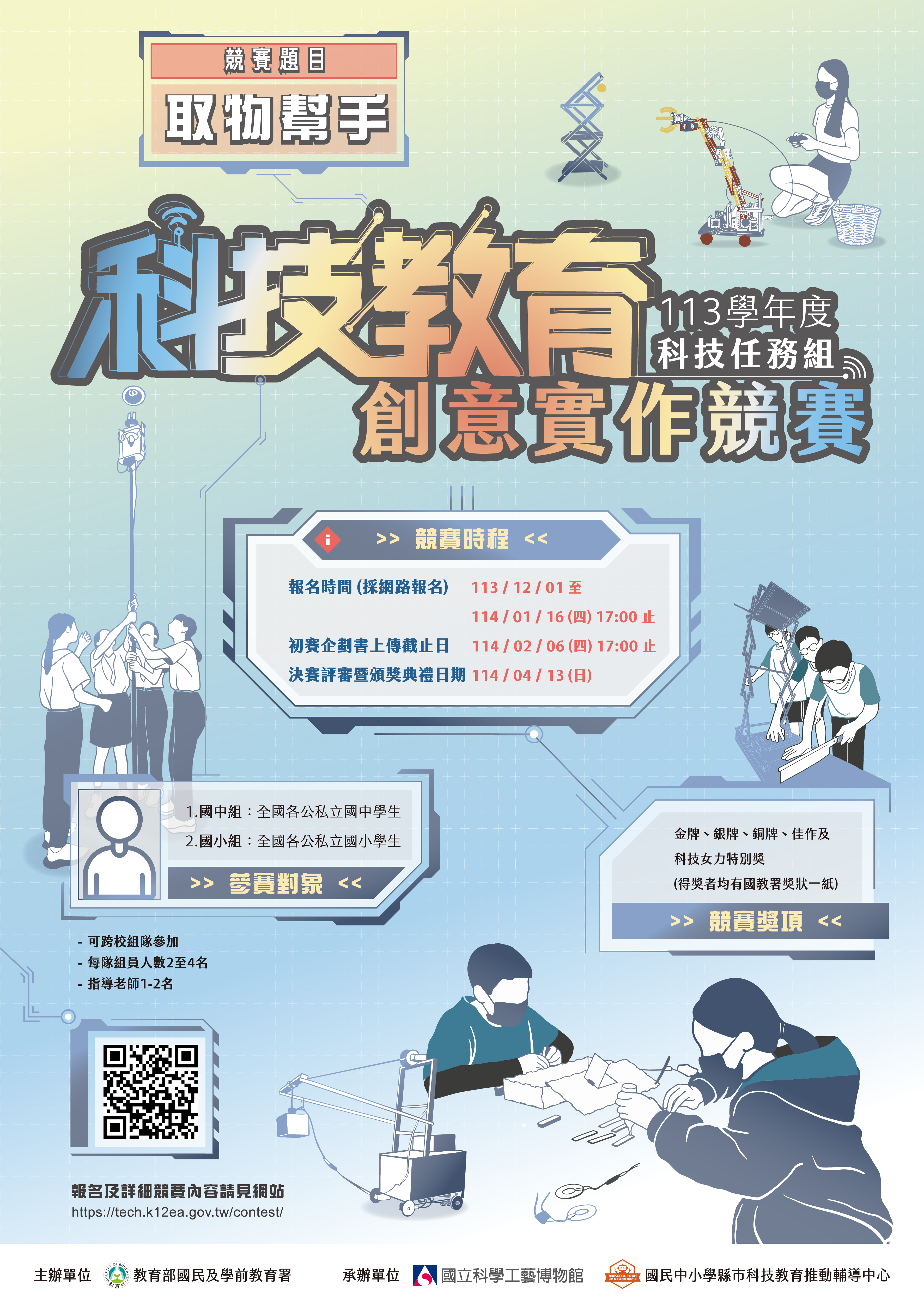 (三)相關競賽資訊請參閱網頁(網址:https://tech.k12ea.gov.tw/contest/)