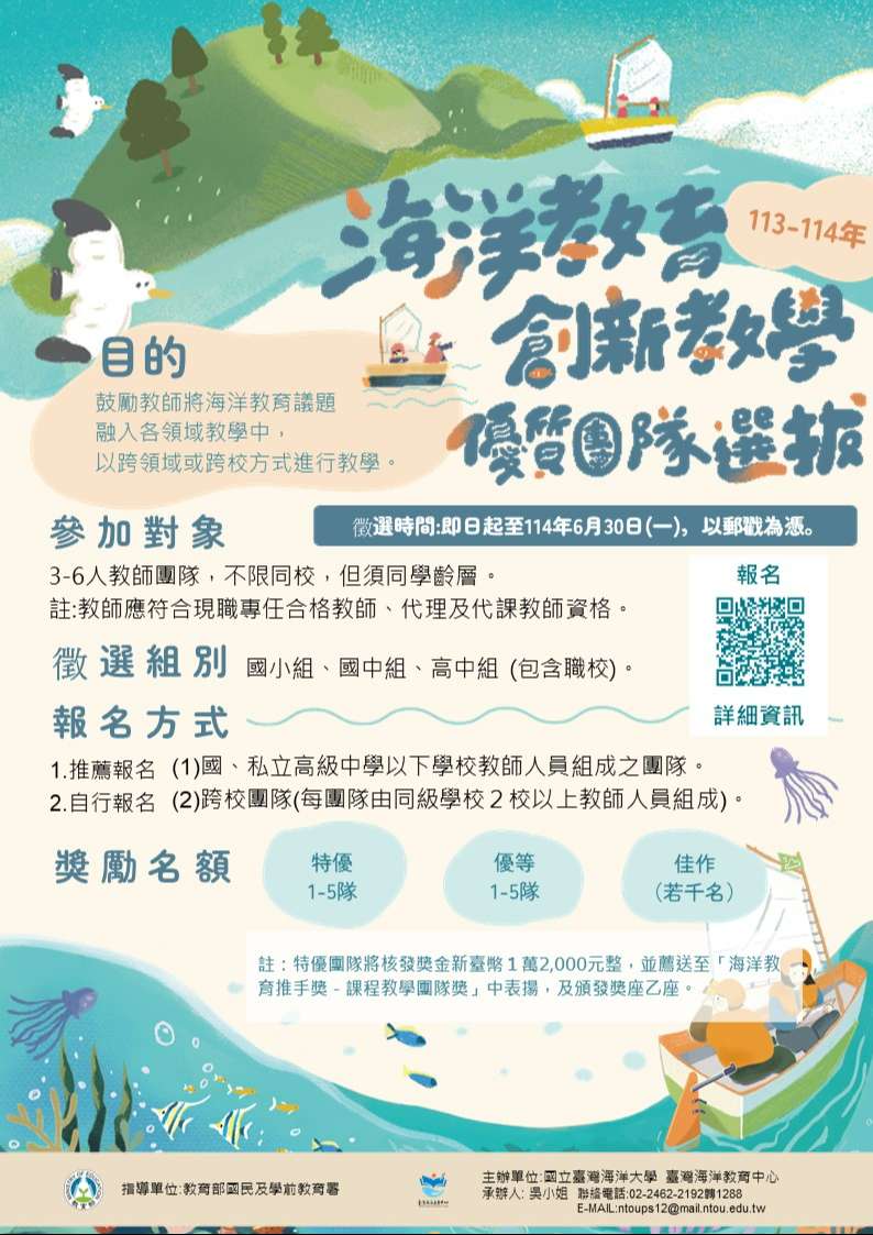 一、依據國立臺灣海洋大學114年2月7日海洋教育字第1140002222號函及本局113年5月20日北市教國字第1133063380號函續辦。