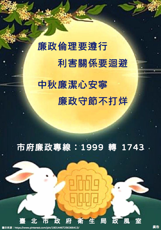 中秋佳節將至,請同仁共同維護廉潔形象,遵守以下原則:
