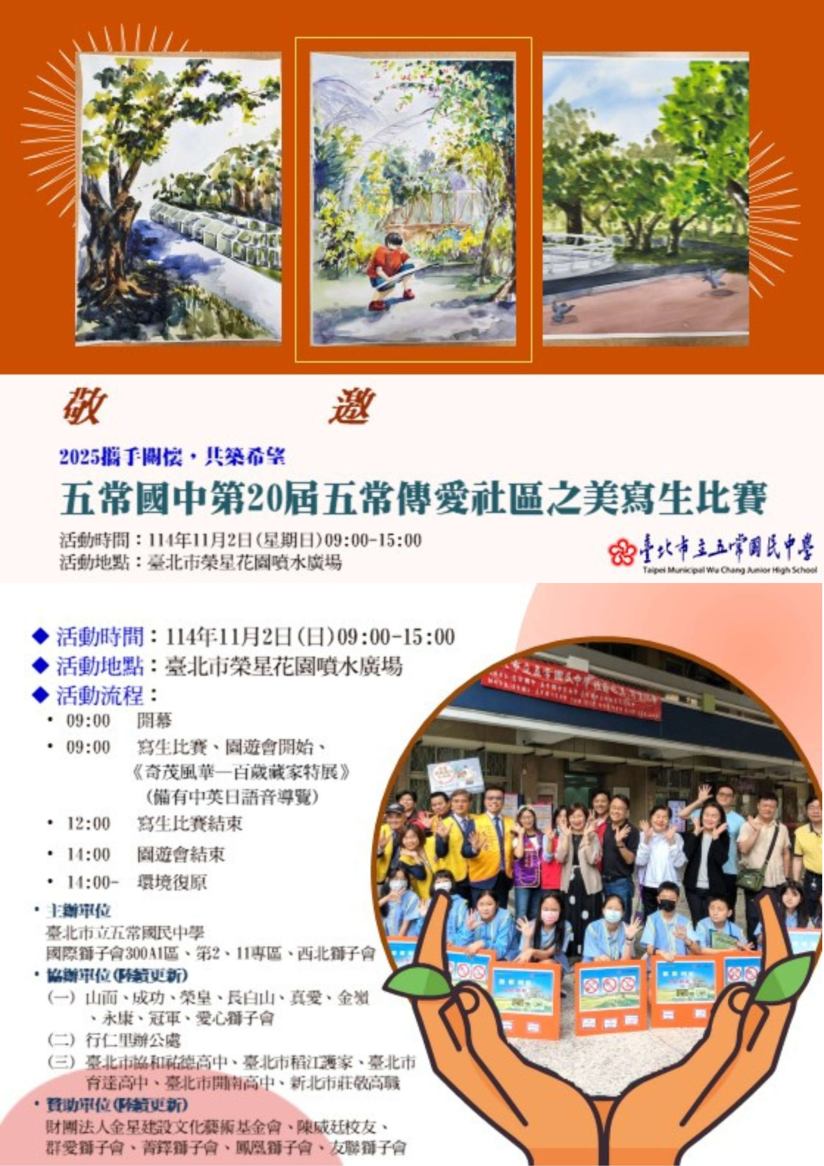 一、比賽時間:114年11月2日(星期日)早上9時至15時整(寫生比賽至12時)。