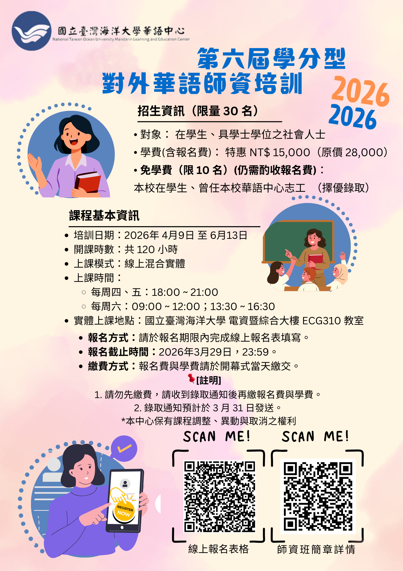 三、報名方式:請於115年3月29日23:59前完成線上報名填寫錄取通知預計於3月31日以Email發送(未錄取者將不另通知),