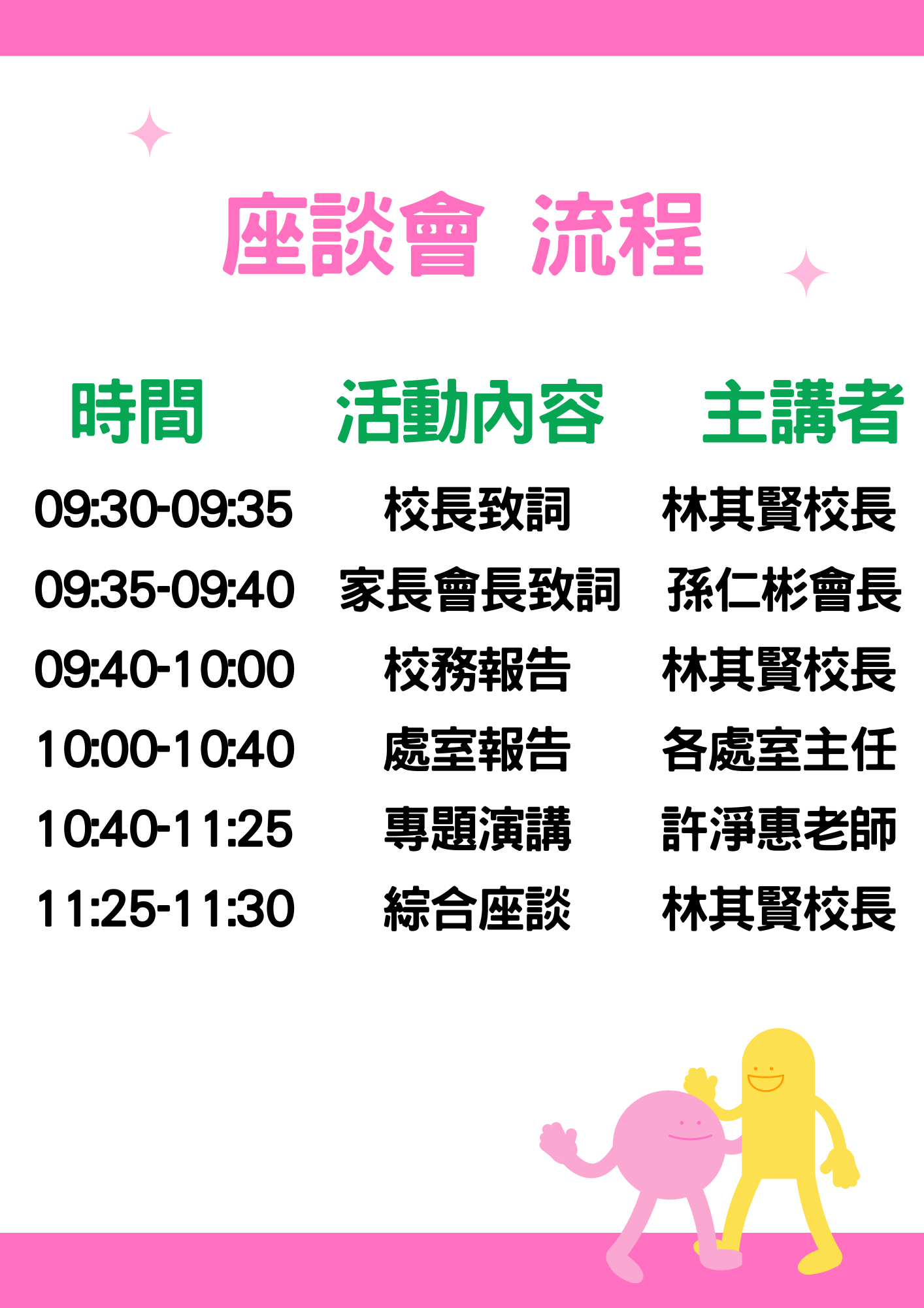 謝謝您的配合,新的學習階段,也是全新的挑戰,期待您我共同合作,攜手陪伴孩子學習、成長、茁壯!