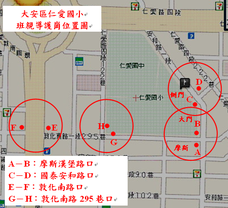 (1)A、B、C、D點,於仁愛國小大門導護裝備室領取